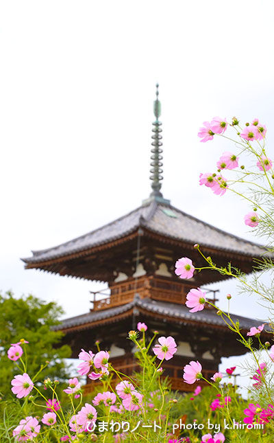 奈良、法起寺周辺のコスモス。